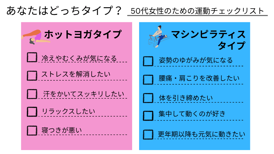 健康やスタイル維持のために「ホットヨガ」や「マシンピラティス」が気になっている方も多いでしょう。